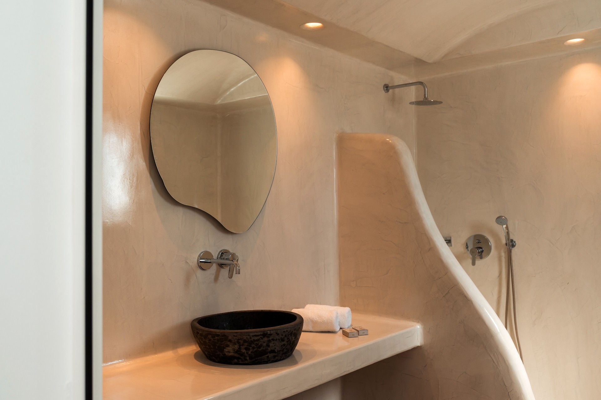 Bathed in natural light and enjoying open, airy and inviting spaces, our Sea view 1 bedroom Suite with Private Pool is a hideaway where guests savour time together at their own pace, never seeking to leave its grounds. Offering peace and quiet after a day of exploring, this one-bedroom suite features an open plan living area with a sofa bed, a bedroom with a double bed, two bathrooms, while offering an outdoor area with a private pool. With interiors of approximately 55 m² it may accommodate up to four persons, while an extra bed is also available. The suite delivers the perfect blend of sophisticated comfort and indulgence with thoughtful amenities and services, destined to enchant every guest with a truly one-of-a-kind hospitality experience in Santorini.